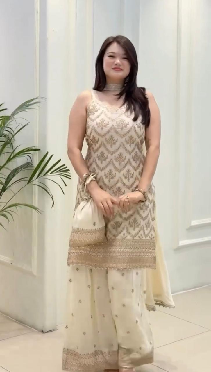 ✨ Upgrade your ethnic collection with this premium designer Top-Plazzo-Dupatta set with Potli bag.